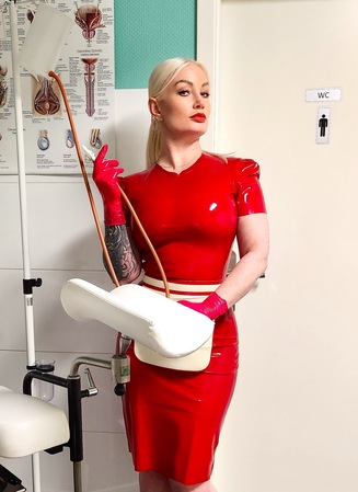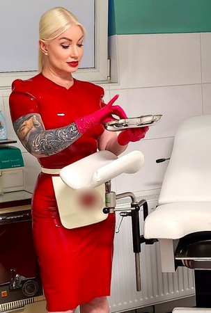 Als leidenschaftliche Bizarrärztin empfange ich in diversen Outfits zu meiner besonderen Sprechstunde und führe kompetent in die Welt des Klinik Fetisch ein.